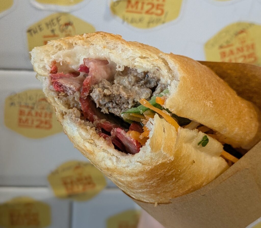 筆者が訪れた際には、スペシャルと書いてあったビーフのバインミー(55,000VND)をチョイスしてみた。